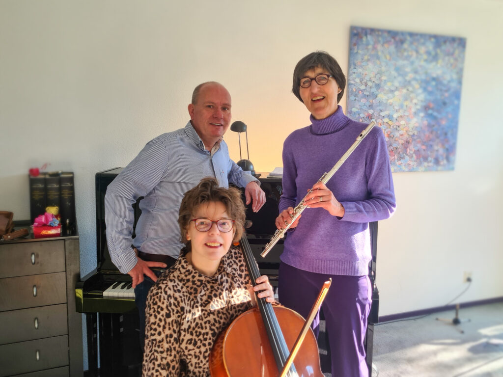 We zullen ons even voorstellen: wij zijn een trio bestaande uit Arjan (piano), Yvonne (fluit) en Anneke (cello). Sinds het voorjaar van 2023 spelen wij samen. Yvonne en Anneke kennen elkaar al bijna 20 jaar. Het begon met samenspelen op de tennisbaan. Nu vormen zij een muzikaal duo. Anneke en Arjan vormen een “quatre mains” duo en kennen elkaar via de muziekschool, waar zowel Arjan als Anneke pianoles volgen bij Henk (Mak) van Dijk. Anneke heeft zich jarenlang alleen op de piano gericht. In 2019 heeft zij de cello weer opgepakt en momenteel krijgt zij les op de muziekschool van Harriët Overbeek. Yvonne volgt les bij Tim Wintersohl.